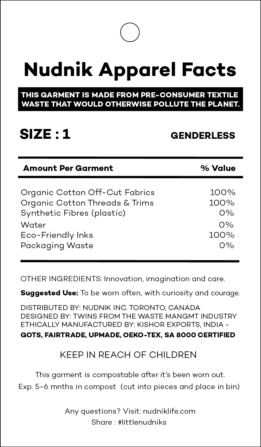 Nudnik is leading the charge in sustainable fashion with genderless core styles that are carefully engineered to reduce textile waste pollution, while also protecting our precious natural resources from traditional clothing production. Outfit your wardrobe guilt-free – Nudnik has got you covered!